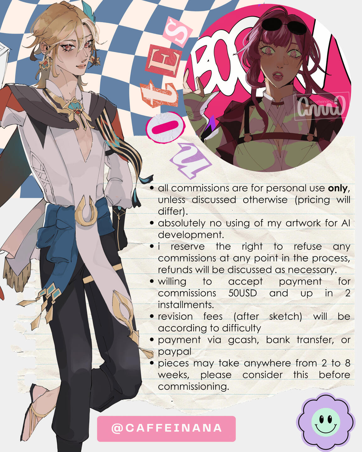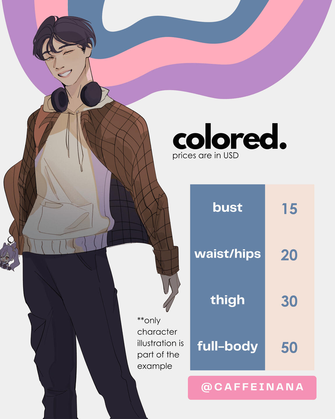 - cleaned up lineart with base color and cel shading.- additional characters: +80% of base price
