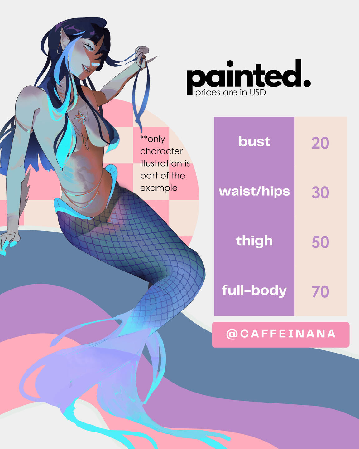 - plain or pattern backgrounds are free, intricate backgrounds will be negotiated separately.